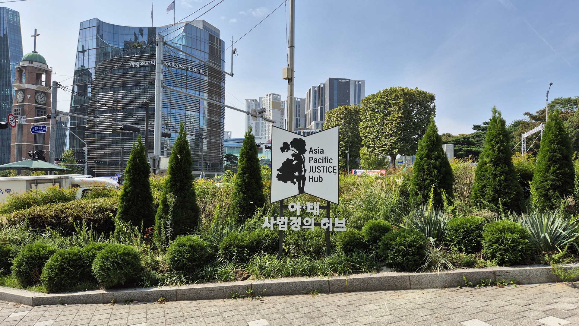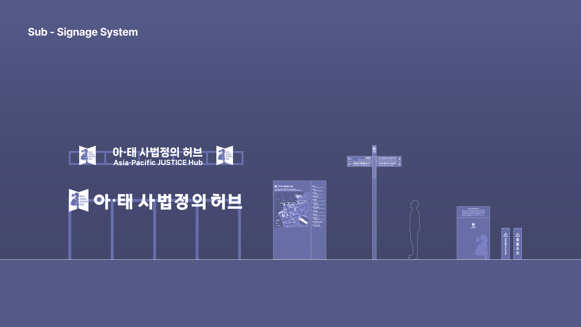 이와 함께 서초역 사거리 일대에 아·태 사법정의 허브의 상징물 향나무를 형상화한 통합 BI를 개발하고 이를 활용한 안내사인을 설치하여 시각적 정체성을 구축하였다.