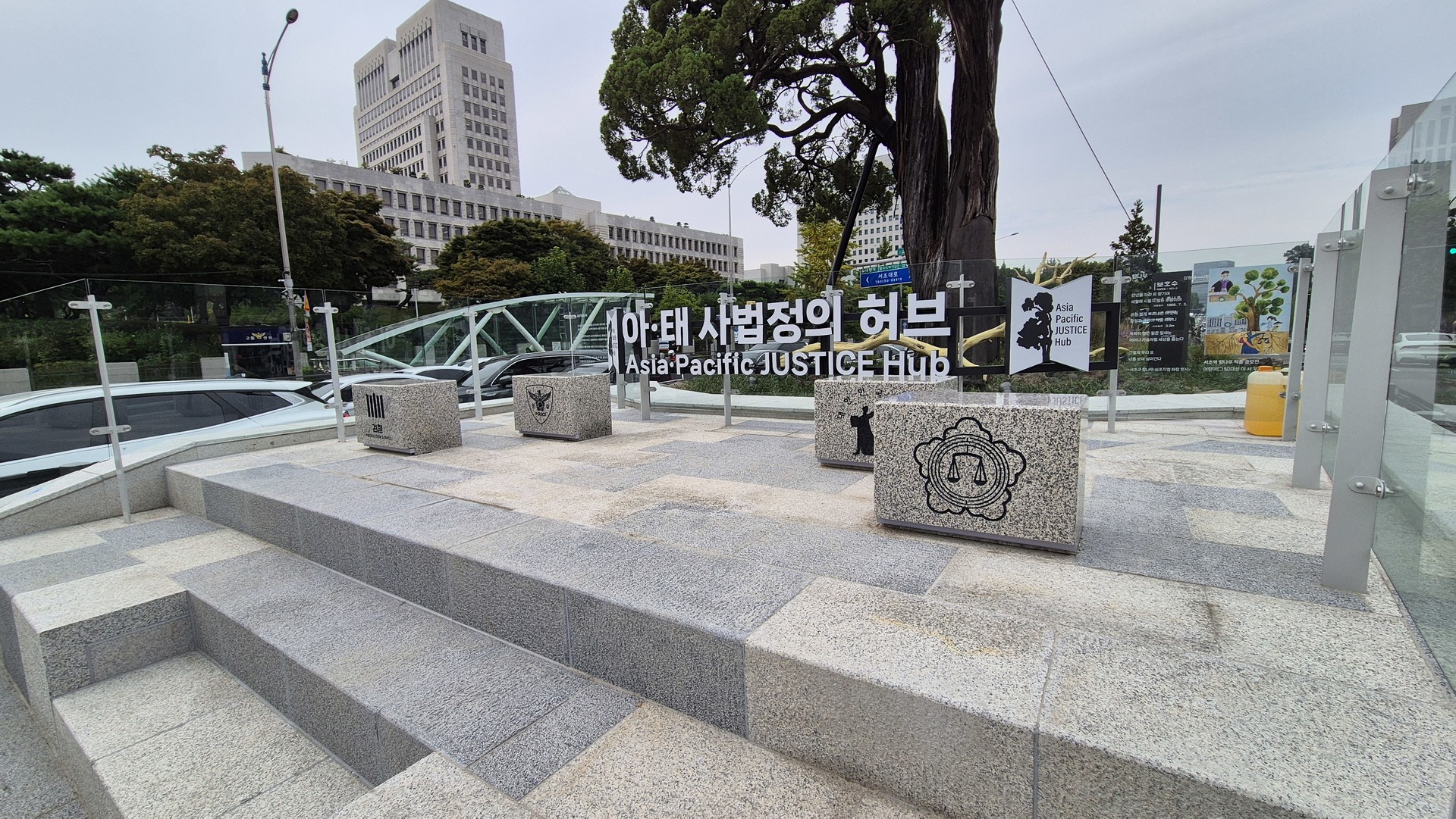 오픈스페이스 내 법조단지의 상징 강화를 위해 법원·검찰·경찰·변호사협회 등 주요 법률기관의 CI 상징물을 설치하고 바닥에는 법률 명언을 새겨 자연스럽게 법과 정의의 가치를 체감할 수 있도록 했다.